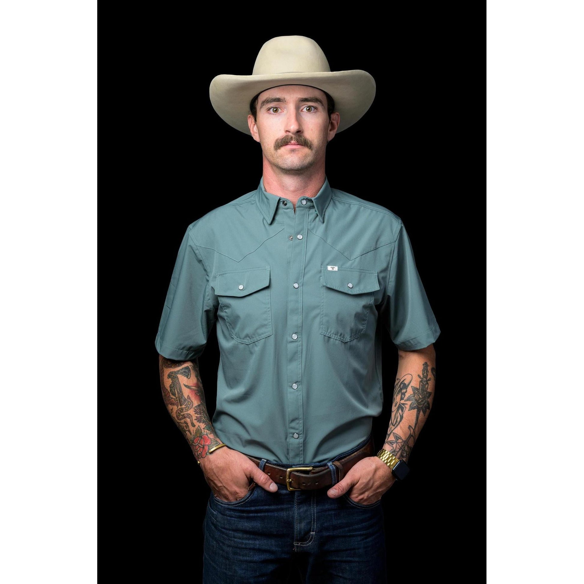Ferrell Teal Short Sleeve Snap Shirt