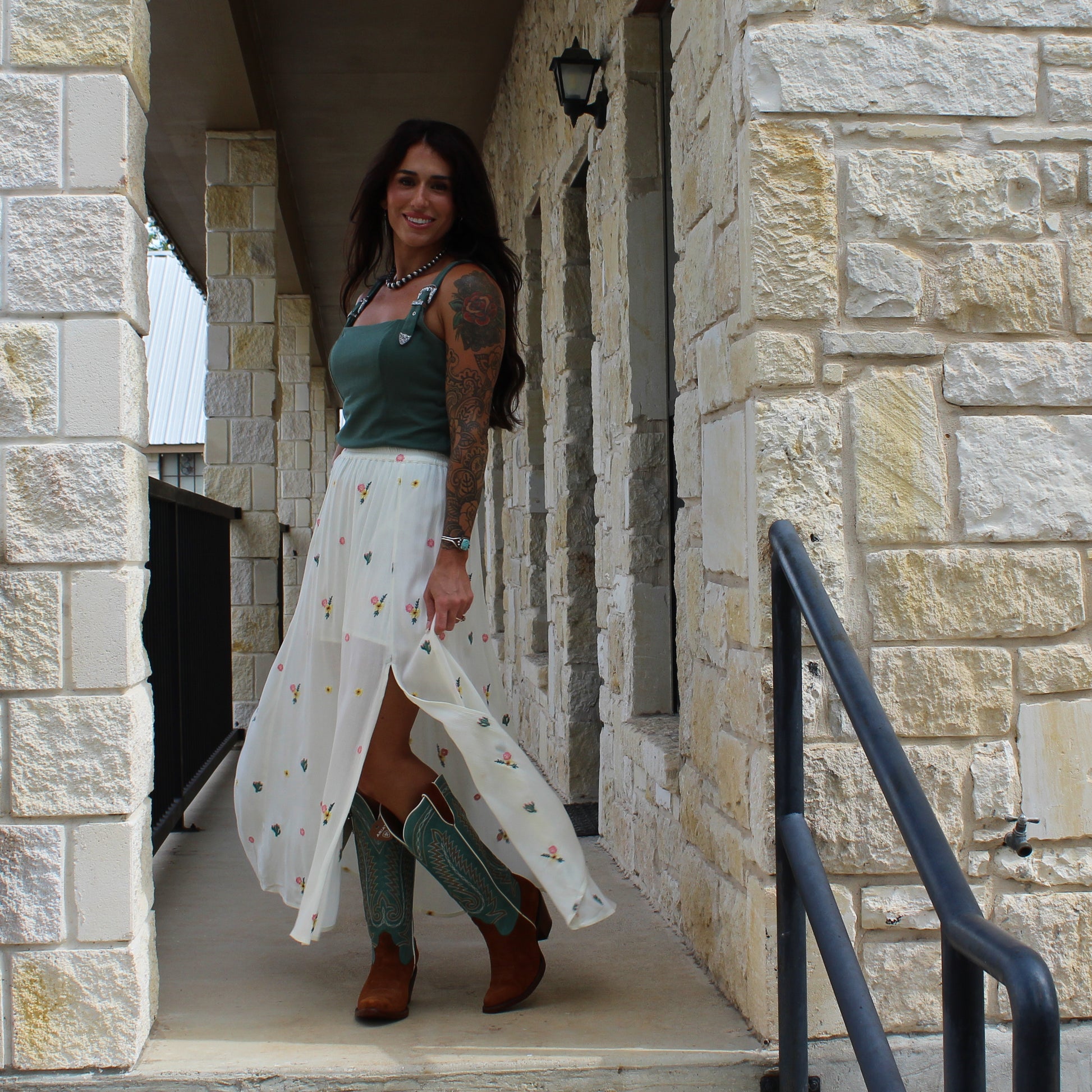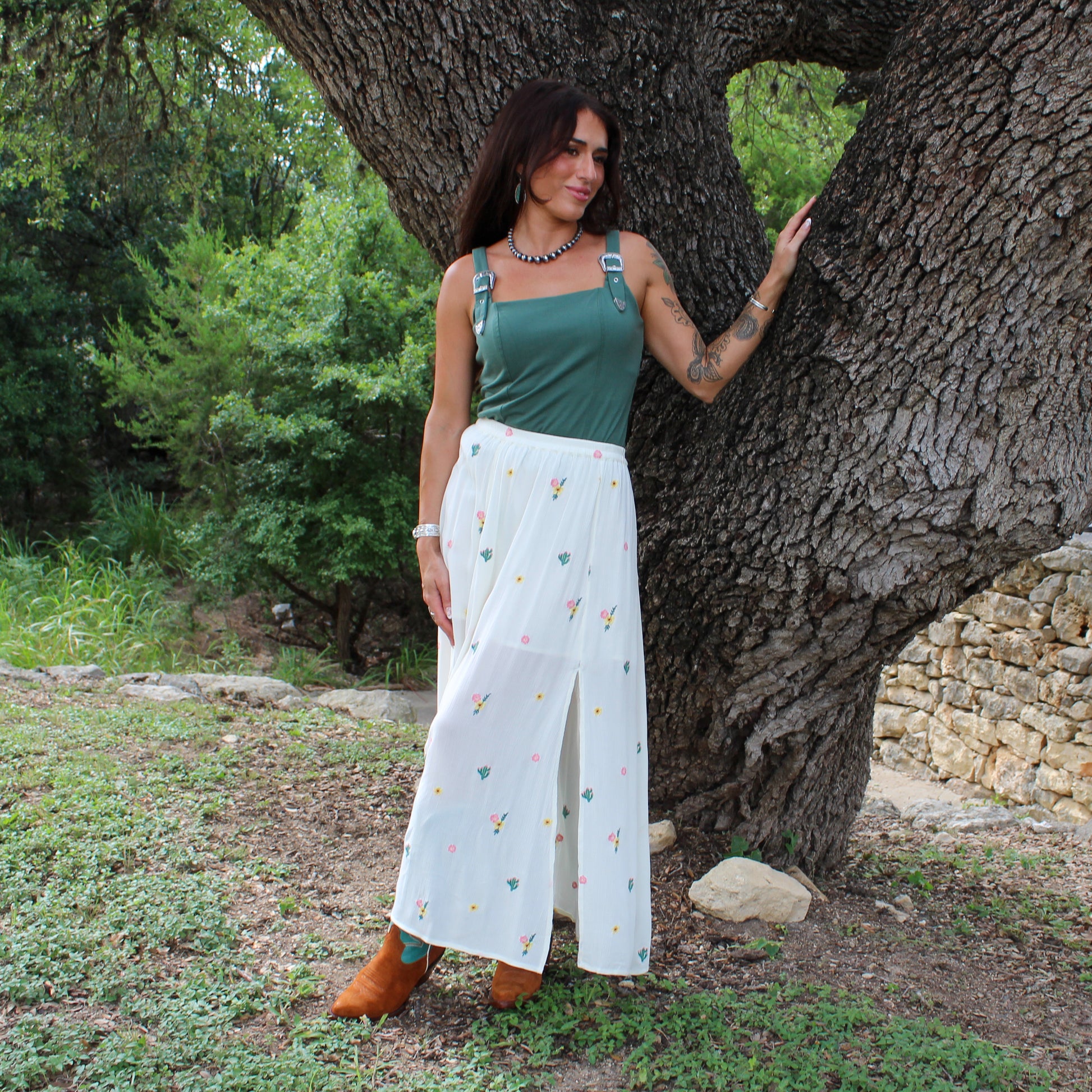 - Floral and cactus embroidered detail