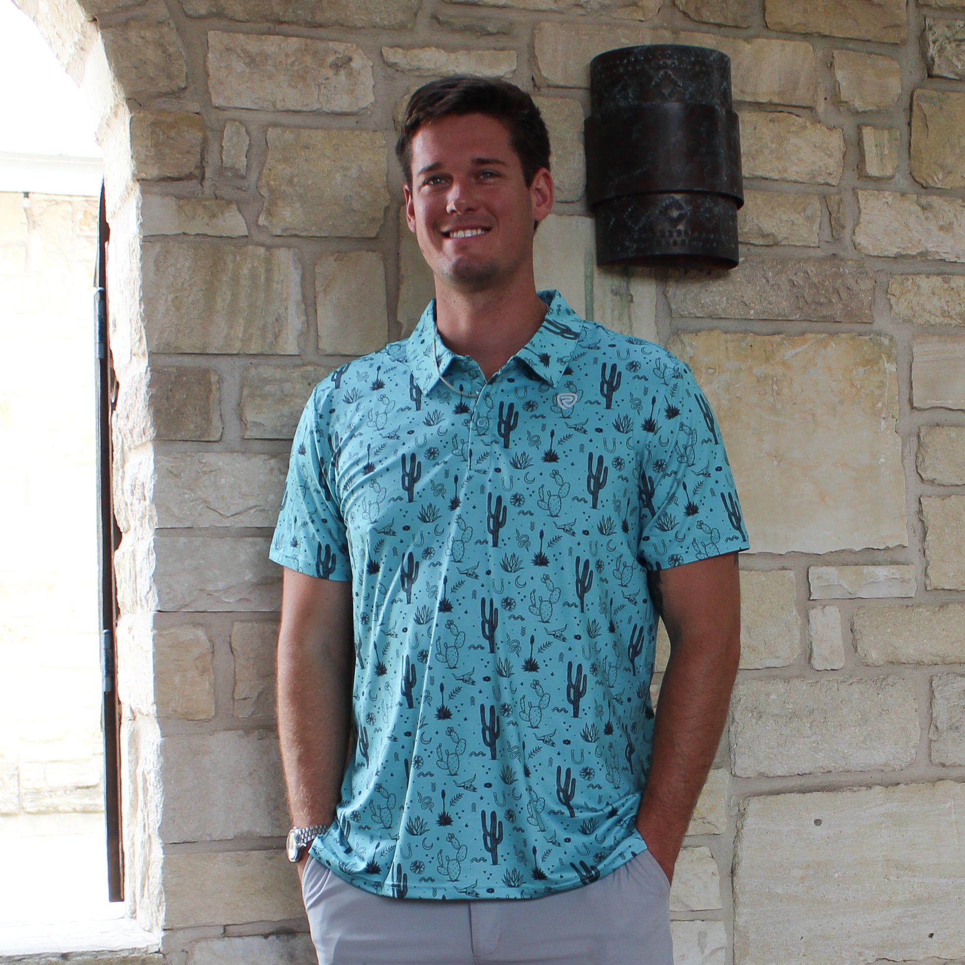 Increase quantity for Rock&Roll Turquoise Cactus Print Polo