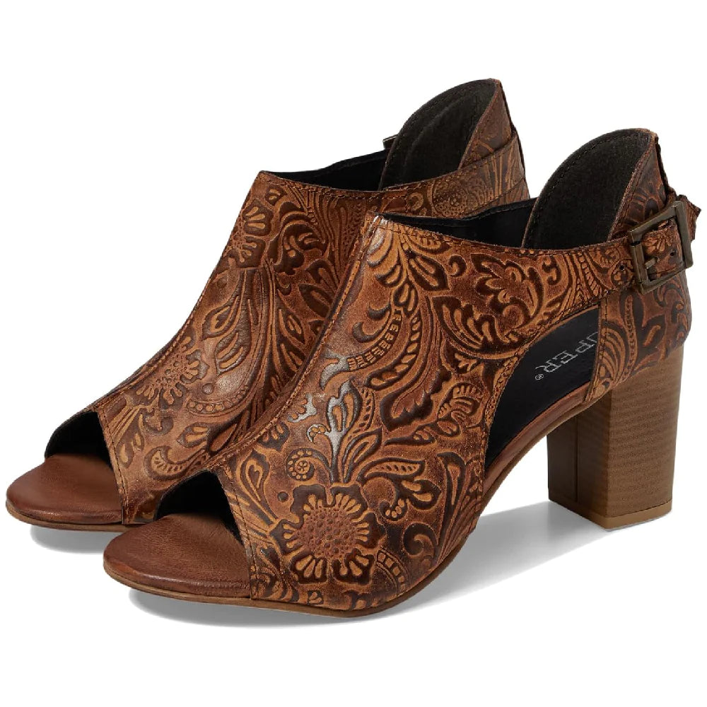 The Roper® Mika Closed Back sandals have a beautiful floral-tooled design paired with a classic antiqued metal buckle that adds a little Western flair to your closet.