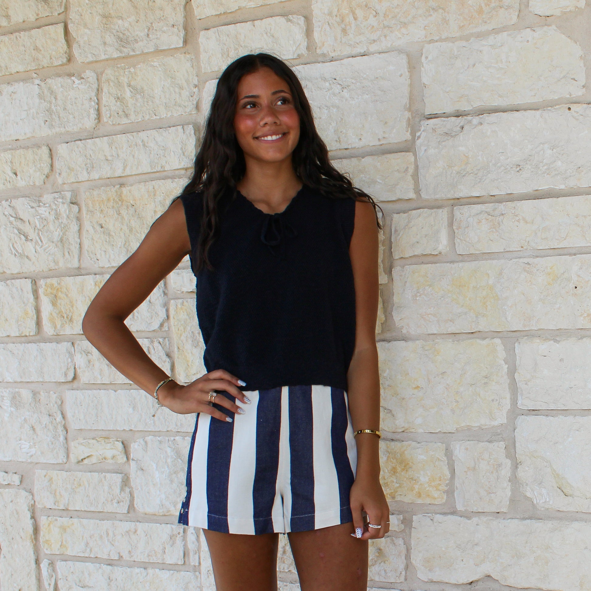 Wishlist Navy/Natural Cotton Striped Shorts