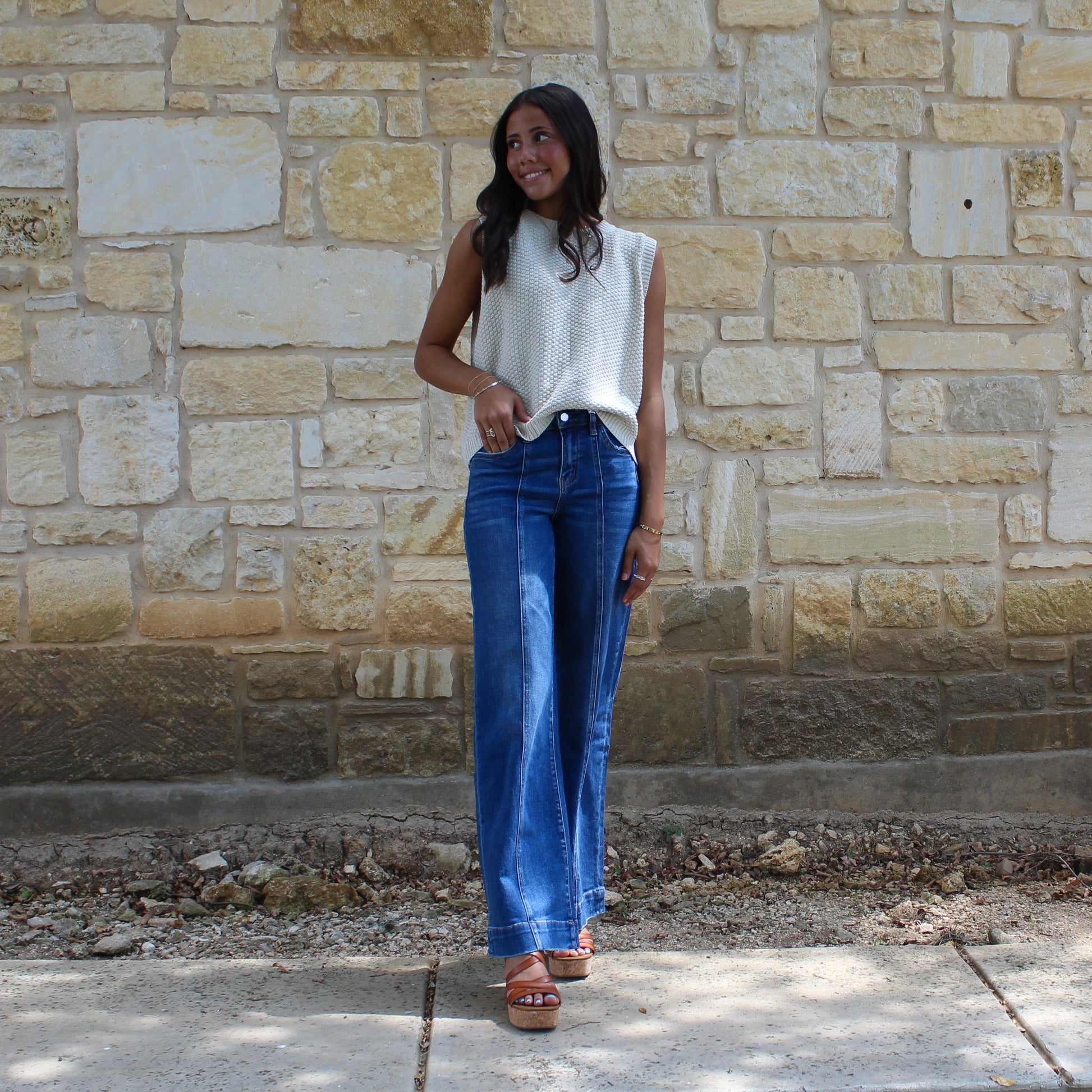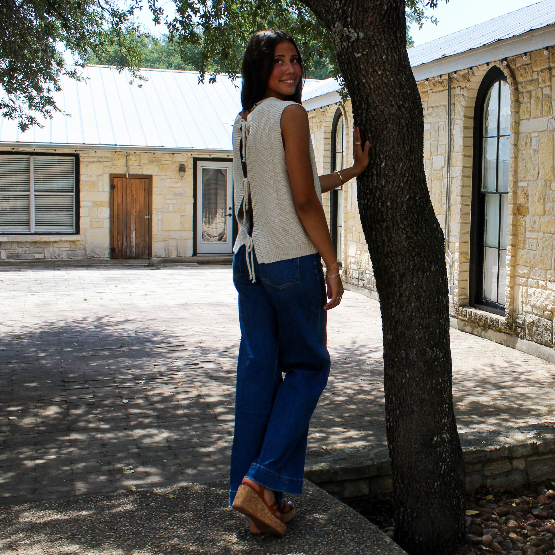 Wishlist Textured Self Back Tie Ecru
