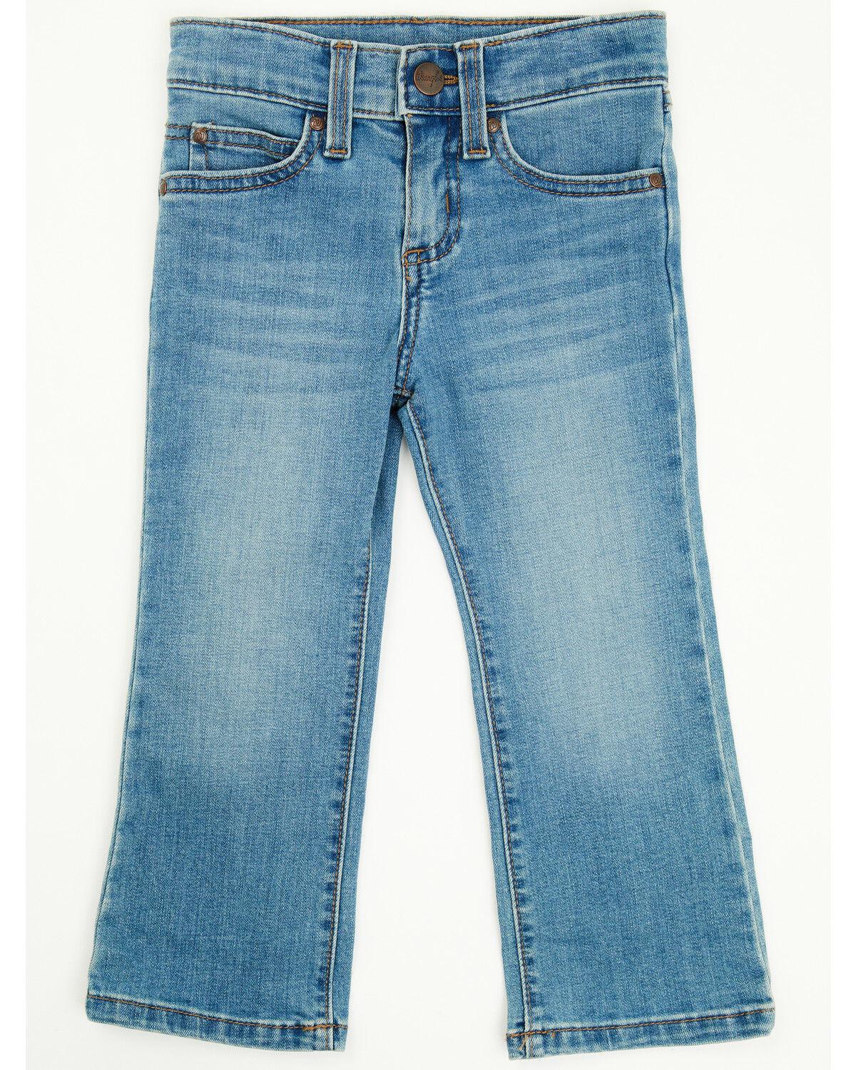 Every cowboy-in-training has to have a classic pair of Wrangler® bootcut jeans. What better way to get him started in the world of kids' Western wear than with this iconic silhouette? This baby and toddler jeans offer classic 5-pocket styling and our signature 'W' embroidery. They're made from a stretchy fabric designed to keep your baby cowboy comfy. They'll be ready to lasso the world!