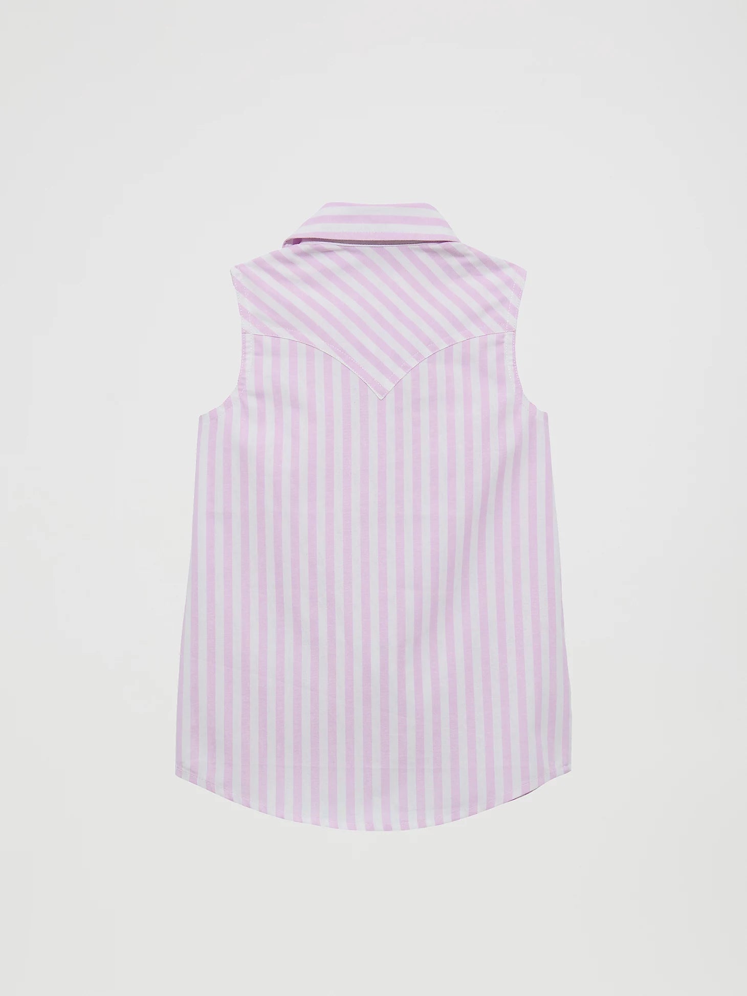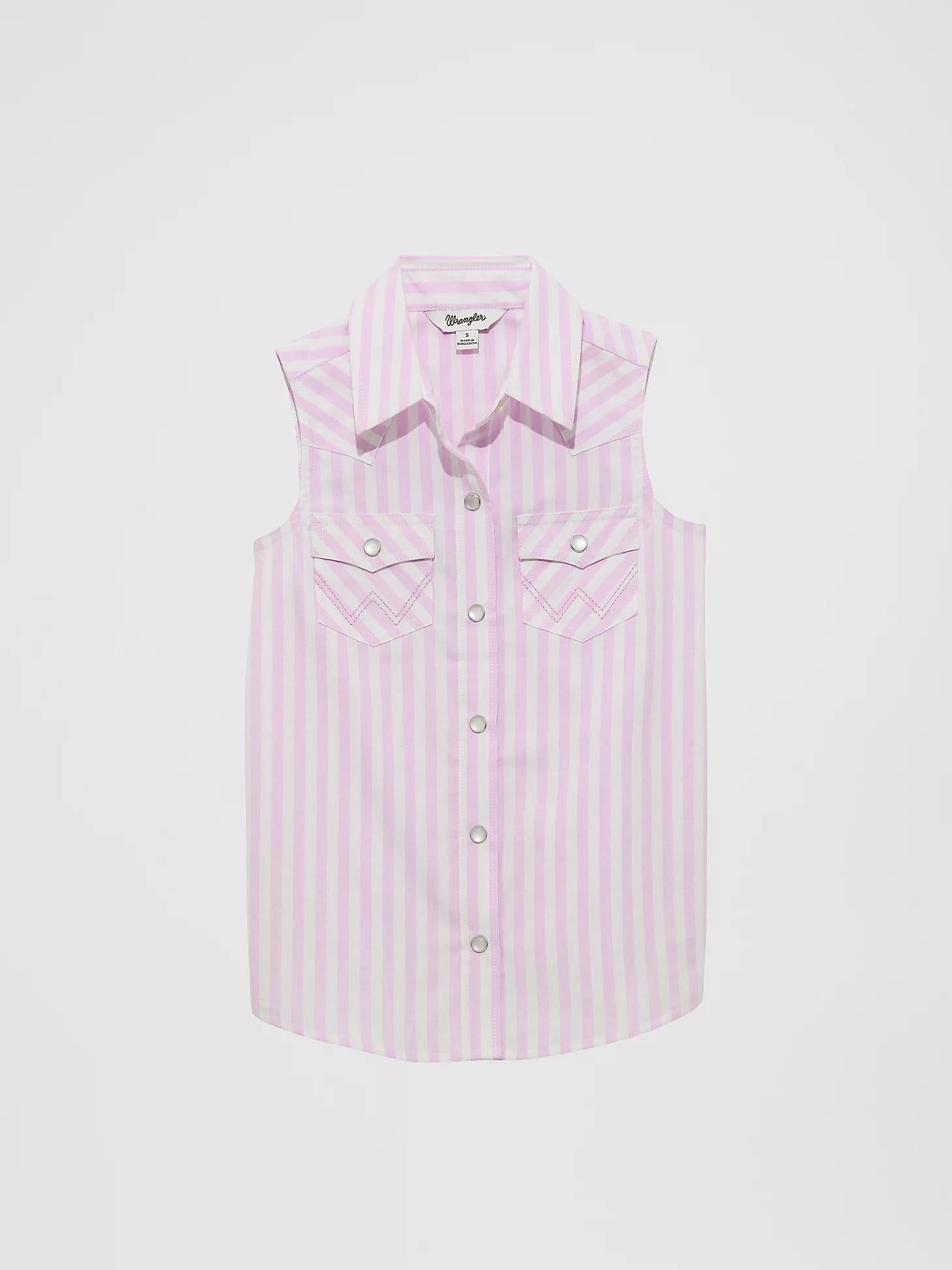 The snap shirt’s a favorite for a reason. Your cowgirl will soak up the sunshine every chance she gets in our Striped Western Snap Tank. It’s crafted from 100% cotton for nonstop comfort, with a sleeveless design that’s perfect for warmer days. It comes with single-point yokes from front to back, chest flap pockets with the signature ‘W’ stitching, and pearl snaps to finish the look.